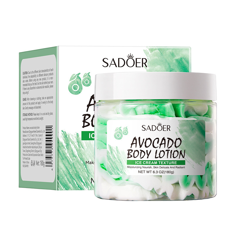 Pamper your skin with SADOER Avocado Body Butter. Enriched with nourishing avocado extracts, this rich body lotion deeply hydrates and moisturizes, leaving your skin soft, smooth, and radiant. Ideal for daily use, it helps improve skin elasticity, soothes dryness, and provides long-lasting nourishment. Perfect for all skin types, giving you silky and healthy-looking skin every day.